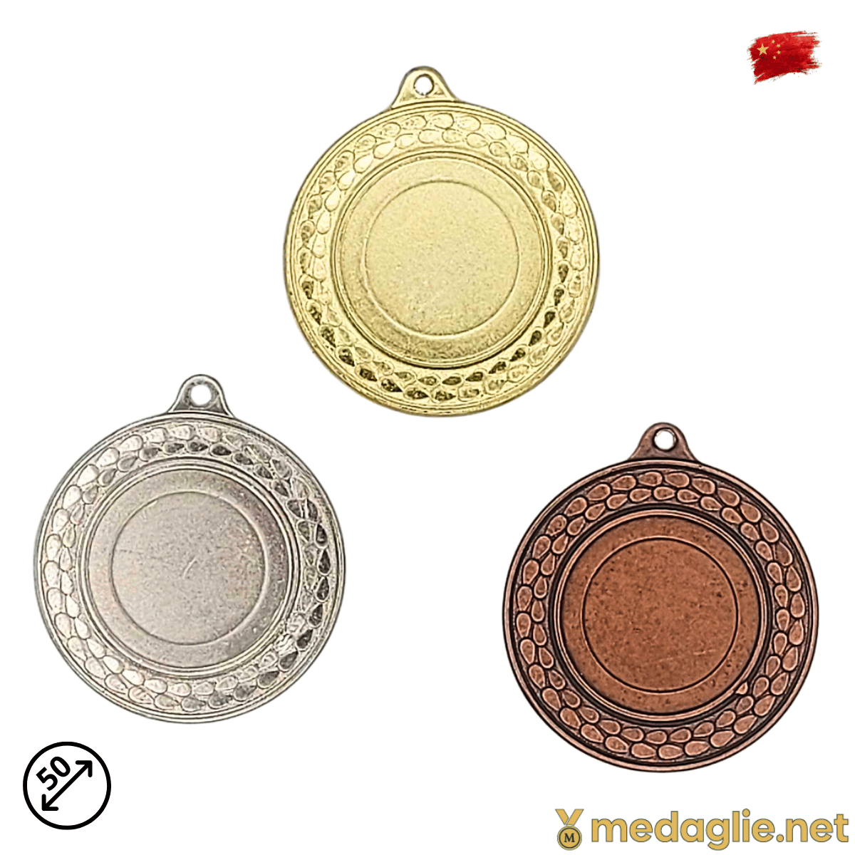 Il diametro 50 mm garantisce una dimensione ideale per essere indossata con orgoglio dagli atleti durante la cerimonia di premiazione.
