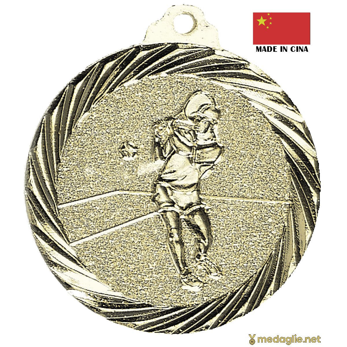 Medaglia tennis coniata di alta qualità, progettata per valorizzare tornei, competizioni e premi ufficiali. Design sportivo elegante, realizzata interamente in Italia, con fronte dedicato al tennis e retro personalizzabile per eventi, società e manifestazioni.